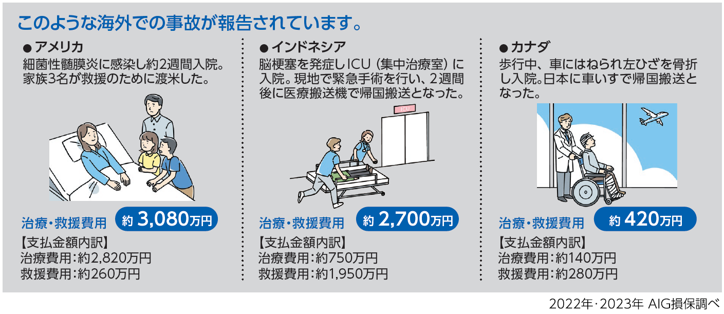 ご旅行中のケガや病気の治療費を、AIG損保から提携病院へ直接お支払いします。